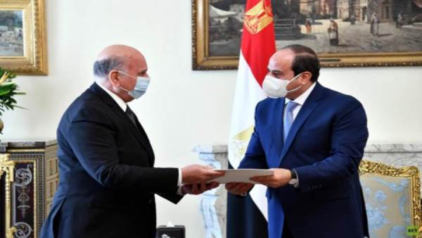 وقال السفير بسام راضي المتحدث باسم الرئاسة: وزير الخارجية العراقي نقل إلى السيد الرئيس رسالة من أخيه السيد مصطفى الكاظمي رئيس الوزراء العراقي، تضمنت الإشادة بالروابط الأخوية التاريخية التي تجمع بين البلدين الشقيقين، والتأكيد على تقدير العراق للجهود المصرية الداعمة للشأن العراقي على كافة الأصعدة، والتطلع لتعزيز أطر التعاون مع مصر، سواء على المستوى الثنائي أو في إطار آلية التعاون الثلاثي مع الأردن، وذلك للاستفادة من تجربة النجاح المصرية الملهمة في مجال المشروعات التنموية ونقلها إلى العراق، خاصةً في مجال البنية التحتية والطاقة الكهربائية.