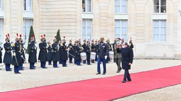 الرئيس السيسى يضع إكليلا من الزهور على قبر الجندى المجهول بقوس النصر بباريس