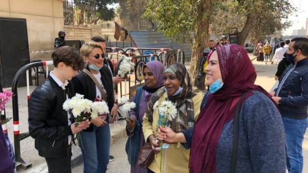 فى تقليد جديد للمركز الثقافى الروسى بالقاهرة بالتعاون مع جمعية "بابيدا" الروسية لحركة العمل التطوعى، قام وفد روسى بتهنئة السيدات المصريات باليوم العالمى للمرأة واهدائهن باقات من الورود اثناء مرورهن امام مقر المركز الروسى بشارع التحرير بالدقى. هذا وأكد اليكسى تيفانيان مدير المركز الثقافى الروسى أن احتفالية يوم المرأة العالمي هو تقليد ثابت بالمركز كل عام حيث يتم تكريم السيدات والفتيات العاملات معنا بتقديم الزهور والهدايا، وفى هذا العام قررنا أن يكون الاحتفال خارج اسوار المركز لتهنئة المرأة المصرية باليوم العالمى. كما عبر أرسينى ستاركوف نائب مدير المركز الثقافى الروسى عن سعادته برد فعل السيدات المصريات على تكريمهن بالورود وهو ما يعكس بساطة الشخصية المصرية التى تتسم بالمرح وقبول الآخر. وقال ديميترى تاراسوف مدير وكالة انباء تاس الروسية بالقاهرة أن المبادرة تمت فى اطار العمل التطوعى لجمعية "بابيدا" الروسية التى تشارك فى العديد من الأنشطة الخيرية والثقافية فى اطار دعم العلاقات الانسانية بين مصر وروسيا. وأكد شريف جاد رئيس الجمعية المصرية لخريجى الجامعات الروسية والسوفيتية أن فرحة سيدات وفتيات مصر بتهنئة الوفد الروسى بالشارع وبوسائل المواصلات العامة، يعكس مكانة الروس فى قلوب المصريين بعد مشوار حافل من التعاون المشترك، خاصة واننا نحتفل خلال عام 2021 بعام مصر – روسيا.
