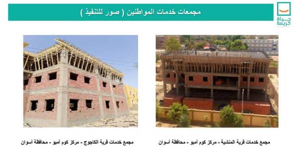 وأضاف رئيس الجهاز المركزي للتعمير، أن الأعمال بمركز كوم امبو، بمحافظة أسوان، تشمل، تطوير وتدعيم شبكات الكهرباء والإنارة العامة بجميع القرى لتحسين الخدمات المُقدمة للمواطنين فى مجال الكهرباء والإنارة العامة، وتنفيذ مجمعات ورش صناعية (تضم ورشا حرفية، ومعرضاً لمنتجات الورش) على مستوى الوحدات المحلية، وكذا إنشاء وتطوير خدمات التضامن الاجتماعى، حيث تقوم وزارة التضامن الاجتماعى بتحديد مطالب المشروعات من الوحدات الاجتماعية، ومراكز تنمية الأسرة، ومراكز التأهيل الاجتماعى، والتنسيق بشأن الأراضى المطلوبة للإنشاء الجديد ويقوم الجهاز بالتنفيذ، وإنشاء وإحلال منازل الأسر الأكثر احتياجاً بالقرى والتوابع "سكن كريم" بناء على بيان المستحقين الذى يتم إعداده من خلال وزارة التضامن الاجتماعى، بالإضافة إلى إنشاء ورفع كفاءة شبكة الطرق داخل القرى، والتى تربط القرى ببعضها لتسهيل حركة المواطنين، وسهولة الوصول للخدمات والمساهمة في تنمية القرى، ومن المخطط تنفيذ حوالى 300 كم طرق داخل المركز، وسيتم بدء العمل بها بعد الانتهاء من تنفيذ شبكات المرافق بهذه الطرق.