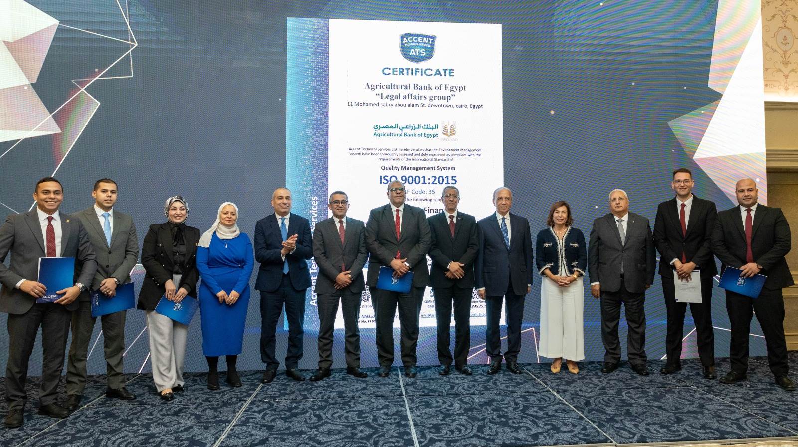 في أمسية رائعة تغمرها مشاعر الفخر والسعادة، احتفل البنك الزراعي المصري بتحقيق إنجازين في ليلة واحدة، الإنجاز الأول بحصوله على شهادة التوافق مع المعايير الدولية لأمن المعلومات وصناعة بطاقات الدفع (PCI-DSS) بأحدث إصداراتها V4.0.1))، والتي يتم منحها للبنوك التي تطبق أعلى المعايير الأمنية العالمية لحماية بيانات بطاقات الدفع الإلكترونية، كما احتفل البنك بحصول المجموعة القانونية على شهادة الأيزو ISO-9001، تأكيداً على التزام مجموعة الشئون القانونية بتطبيق أعلى معايير الجودة في أداءها المهني.