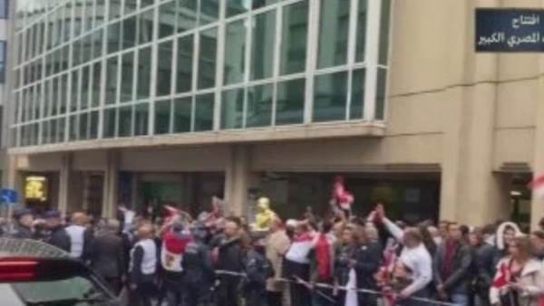 الجاليات المصرية تحتشد أمام مقر إقامة السيسى ببروكسل