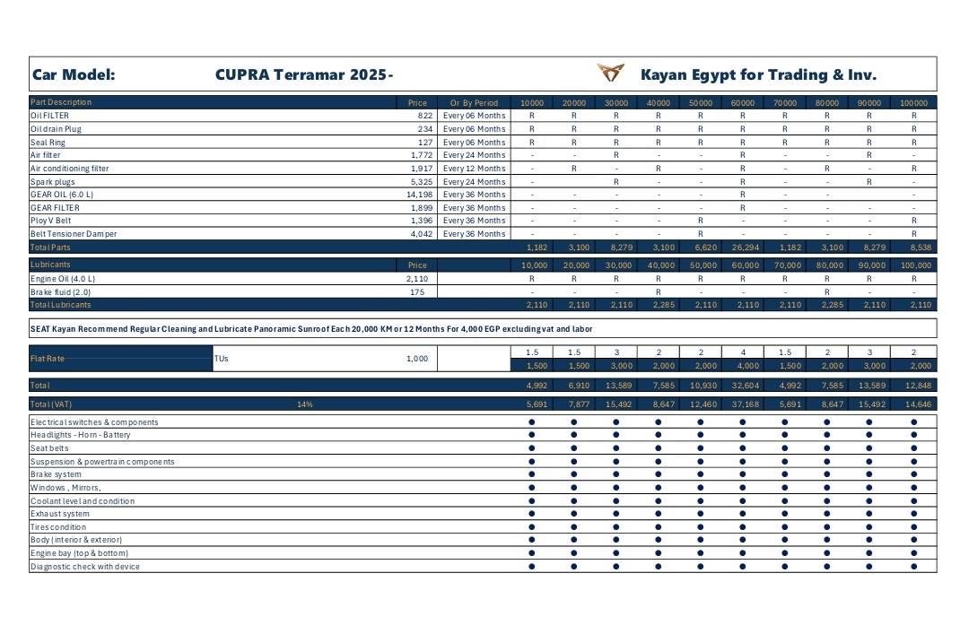"كيان مصر" تعلن أحدث التعديلات علي أسعار الصيانة الخاصة بعلامتي سيات وكوبرا