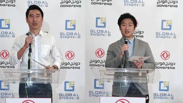 على هامش المؤتمر الصحفى الذى عقدته جلوبال إنجينز وكلاء سيارات دونج فينج التجارية للإعلان عن خطط الشركة للشرو