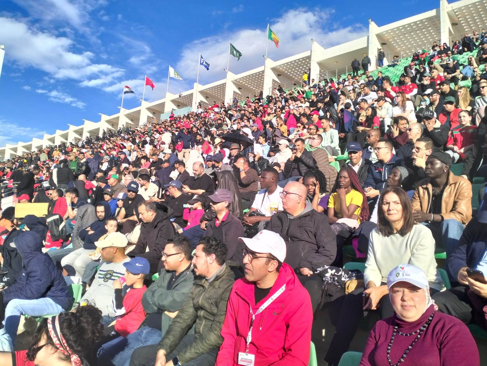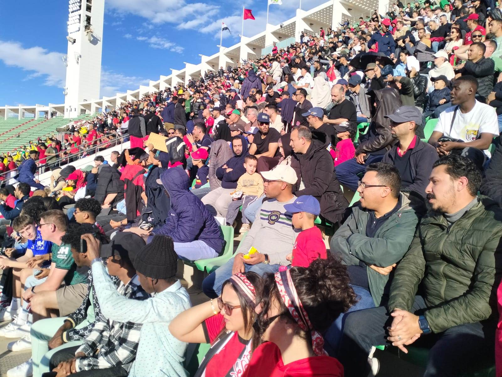 شهدت مدرجات الملعب تلاحمًا مميزًا بين المشجعين، حيث رُفعت أعلام مصر والمغرب جنبًا إلى جنب، ورددت الجماهير المغربية هتافات تحفيزية للمنتخب المصري، مؤكدين أن روح الأخوة بين الشعوب الإفريقية تتجاوز المنافسة الرياضية.