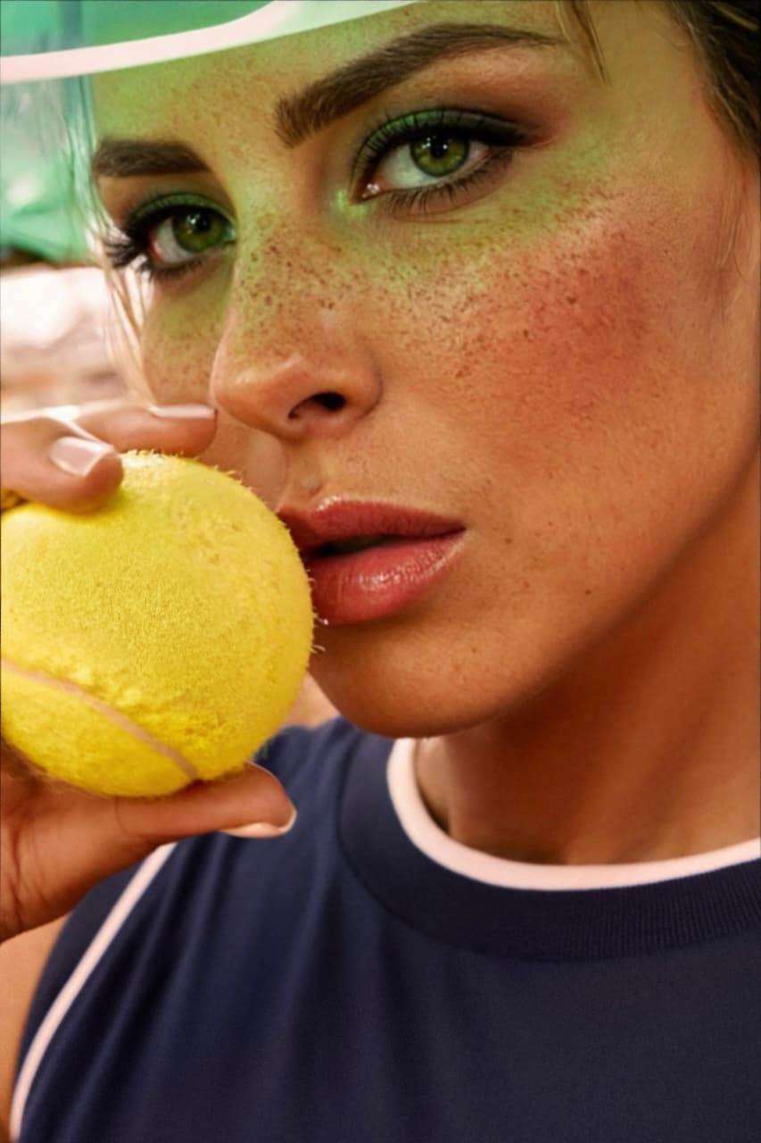 وظهرت ريم مصطفى خلال جلسة التصوير داخل أحد ملاعب التنس، مرتدية أزياء رياضية عصرية جمعت بين العملية والأناقة؛ إذ تنوعت إطلالاتها بين فستان تنس قصير باللونين الأسود والأبيض، مع حذاء رياضي وجوارب طويلة، إلى جانب إطلالة أخرى بكنزة رياضية قصيرة باللون الأخضر الفاتح مع تنورة بيضاء، كما اعتمدت إكسسوارات بسيطة ونظارة شمسية عصرية.
