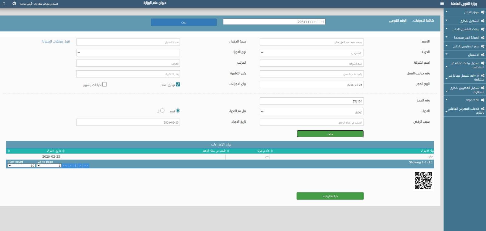 يأتي هذا الإطلاق كترجمة مباشرة لتوجيهات الوزير لقطاع المعلومات بالوزارة، خلال زيارته الاسبوع الماضي للوحدة ،بسرعة إعداد رابط وتطبيق إلكتروني متكامل لحجز مواعيد توثيق عقود العمل بالخارج، سواء العقود التي يحصل عليها المواطنون من خلال وزارة العمل أو عبر جهات أخرى، بما يسهم في تبسيط الإجراءات، وتقليل الزحام، وضمان سرعة الحصول على الخدمة بدقة وكفاءة عالية داخل" الوحدة".
