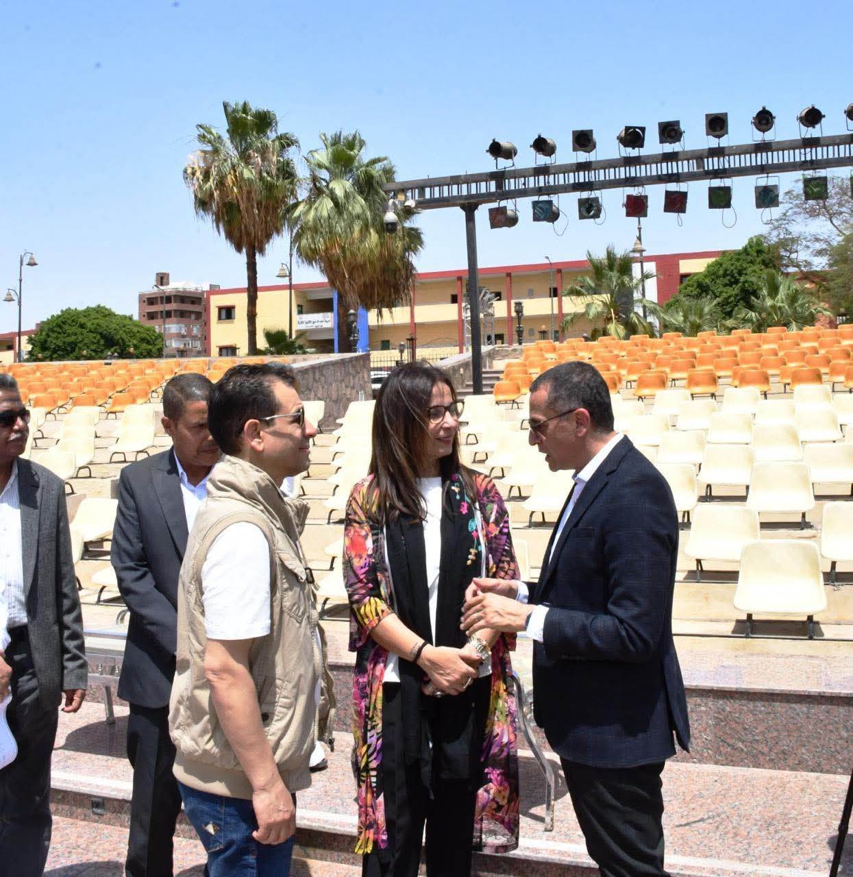 جاء ذلك خلال تفقد وزيرة الثقافة، برفقة المهندس عمرو لاشين محافظ أسوان، مسرح فوزي فوزي الصيفي المكشوف المطل على كورنيش النيل، والذي يُعد أحد أبرز الصروح الثقافية المفتوحة بالمحافظة، حيث يتسع لـ1200 مقعد، ومزود بأحدث أنظمة الصوت والإضاءة، بما يجعله مؤهلًا لاستضافة كبرى الفعاليات والعروض الفنية. كما يضم المسرح قاعة مخصصة للفنون التشكيلية، ما يعزز من دوره كمركز ثقافي متكامل.