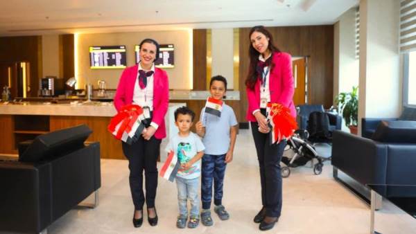 وقام فريق العلاقات العامة والإعلام بشركة ميناء القاهرة الجوي باستقبال المسافرين بالورود وتوزيع الشيكولاتة وأعلام مصر في لفتة تعكس روح الانتماء والاعتزاز بالوطن.