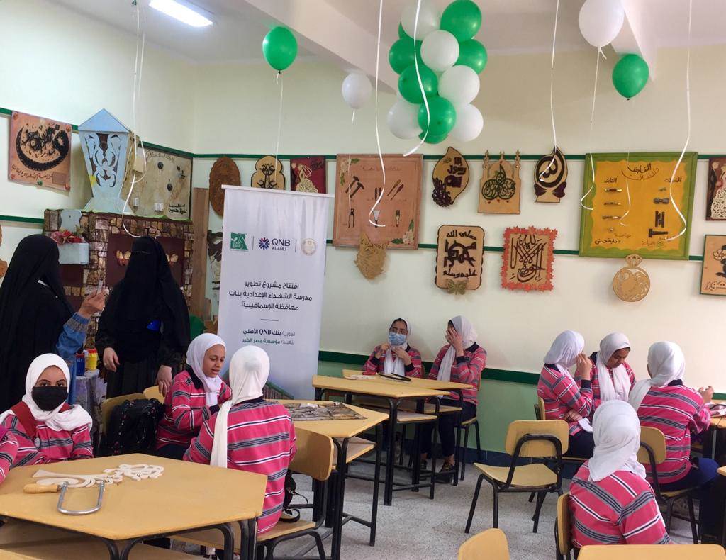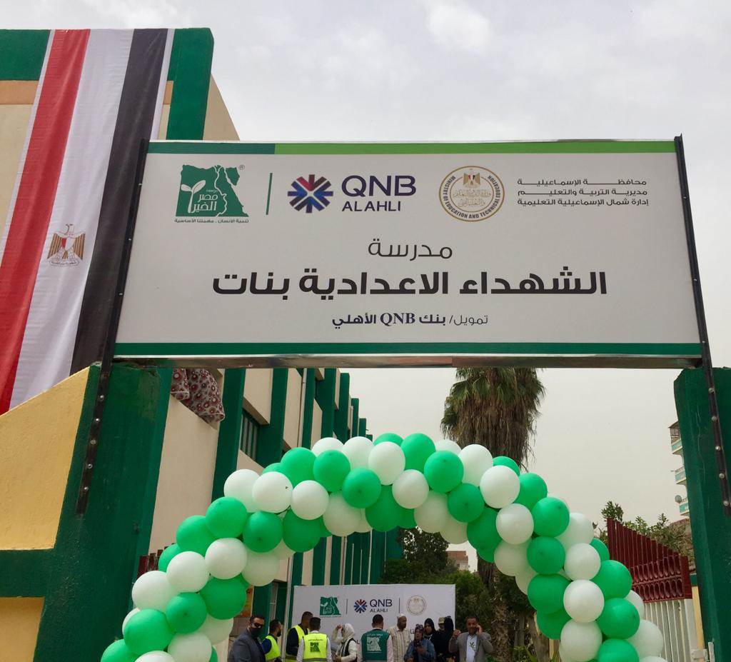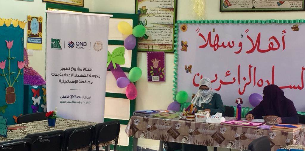 اختتمت مؤسسة مصر الخير وQNB الأهلي فعاليات تطوير مدرسة الشهداء الاعدادية للبنات بمحافظة الاسماعيلية لإتاحة الخدمات التعليمية ل 550طالبة كما تعد تلك المدرسة الوحيدة المخصصة للفتيات في تلك المنطقة مما يساهم بشكل كبير في توفير الخدمات التعليمية لأبناء تلك المنطقة. وشهد الحدث حضور لفيف من القيادات التنفيذية والتعليمية ومؤسسة مصر الخير وQNB الأهلي. شهدت المدرسة عملية تطوير شاملة من حيث دعم وتطوير الفصول والبنية التحتية والتجهيزات والاثاث المدرسي والاجهزة التكنولوجية وذلك بتمويل من QNB الأهلي ورعاية ودعم محافظة الاسماعيلية وتنفيذ مؤسسة مصر الخير من خلال التواجد المجتمعي بمكتب مصر الخير بمحافظة الاسماعيلية.
