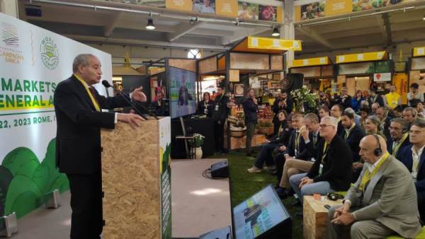 وبدأت مراسم الجمعية العمومية بكلمة ترحيب من رئيس اتحاد الزراعة الإيطالي عقبه كلمة للرئيس المنتخب الجديد لاتحاد التحالف العالمي لأسواق المزارعين وكلمة للمفوض السامي للحكومة الإيطالية للأمن الغذائي الذي قام بزيارة مصر في الفترة الماضية ثم رئيس اتحاد أسواق الجملة الإيطالي وسوف تستكمل خلال اليومين القادمين لقاءات مع الجهات المعنية في هذا الشأن الى جانب لقاءات مع الشركات التي ستبدأ في الاستثمار في مصر.