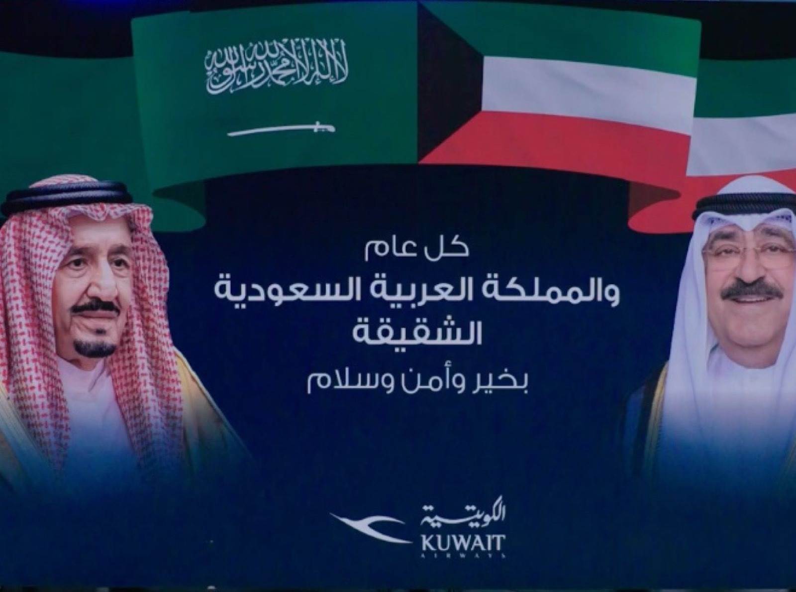 وتحتفل الخطوط الجوية الكويتية اليوم بمناسبة عزيزة على دولة الكويت وعلى قلوب جميع الكويتيين، ويسعده الناقل الوطني لدولة الكويت دائماً أن يشارك الشعب السعودي الكريم احتفالاته ومناسباته، فيما يجمع الشعبين الكويتي والسعودي الشقيقين علاقات وروابط وطيدة وتاريخية تمتد على مر العقود في كل المجالات، سواء الاجتماعية أو السياسية أو الاقتصادية وغيرها، مما يعزز أواصر العلاقات الاخوية بين البلدين قيادة وشعباً، ويجسد روح الترابط والاخوة بينهما.