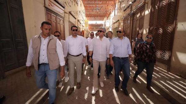 ويلتقي بالأثريين والمرممين ويستمع لمشاكلهم ومقترحاتهم لتطوير العمل الأثري ويقوم بجولة في سوق قيسارية إسنا و
