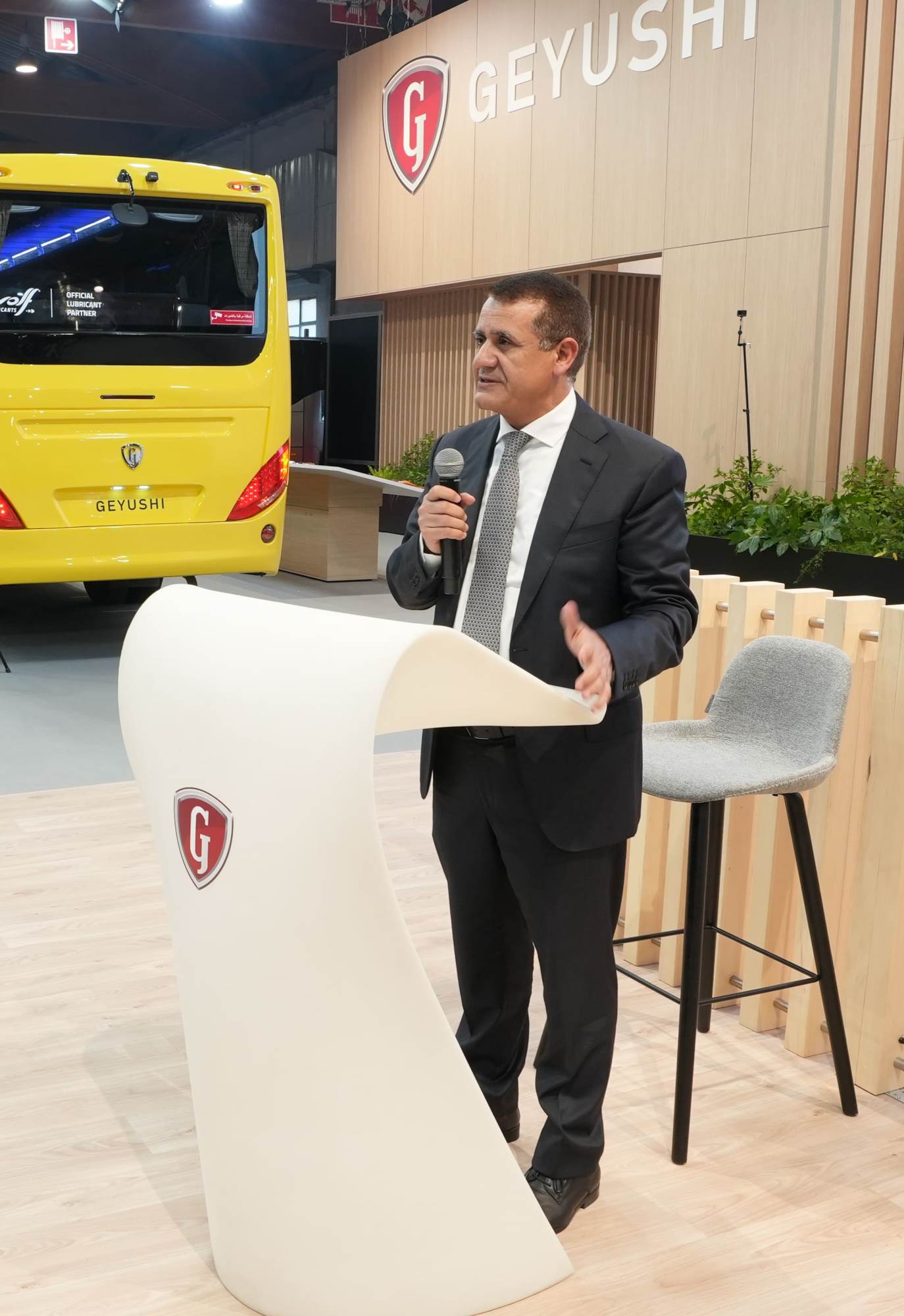كما شدد جيوشي على أن المشاركة في هذا الحدث الدولي تتيح فرصة هامة للتواصل المباشر مع الشركات العالمية، واستعراض أحدث التقنيات والابتكارات في صناعة الحافلات ووسائل النقل، فضلاً عن تبادل الخبرات في مجالات الجودة والسلامة والتكنولوجيا الخضراء.