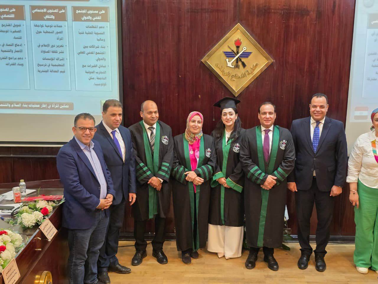 حصلت الباحثة آية محمد خالد زكي السيد الليثي على درجة الماجستير من كلية الاقتصاد والعلوم السياسية بجامعة القاهرة، بالتعاون مع الأكاديمية العسكرية، عن دراسة أكاديمية متخصصة بعنوان: «تمكين المرأة في إطار عمليات بناء السلام – دراسة حالة ليبيا وكولومبيا»، تحت إشراف الدكتور عبد العال الدربي، رئيس قسم العلوم السياسية بجامعة السويس.