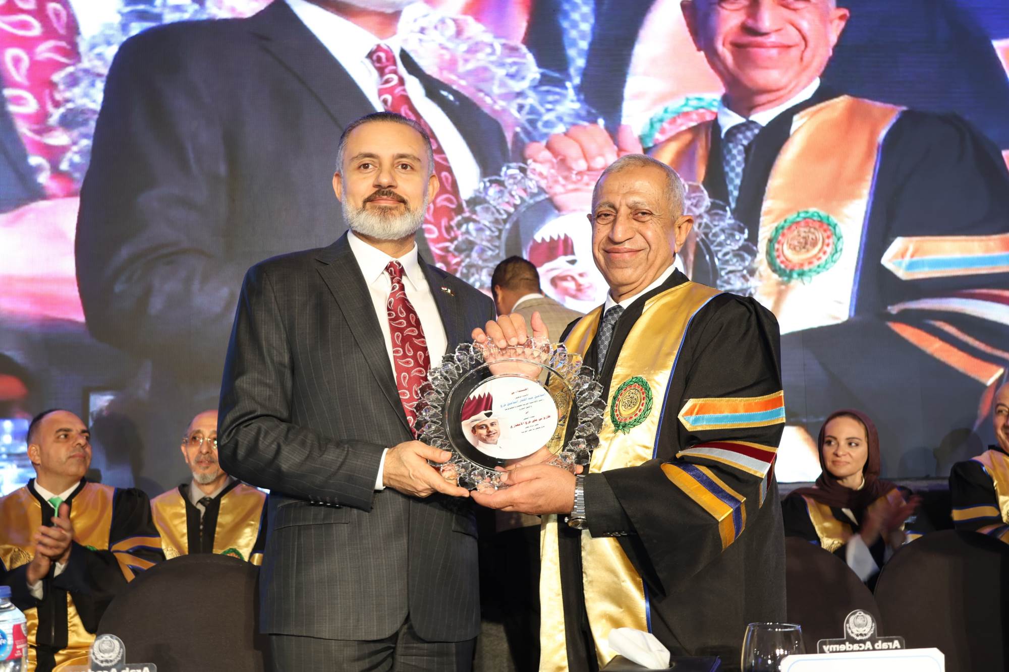 وفي لفتة تقديرية، كرّم رئيس الأكاديمية العربية للعلوم والتكنولوجيا، سعادة السفير طارق الأنصاري، تقديرًا لدعمه المستمر لمسيرة التعاون الأكاديمي العربي، ولدوره في تعزيز العلاقات الثنائية بين جمهورية مصر العربية ودولة قطر، وجهوده في دعم العمل العربي المشترك داخل جامعة الدول العربية.