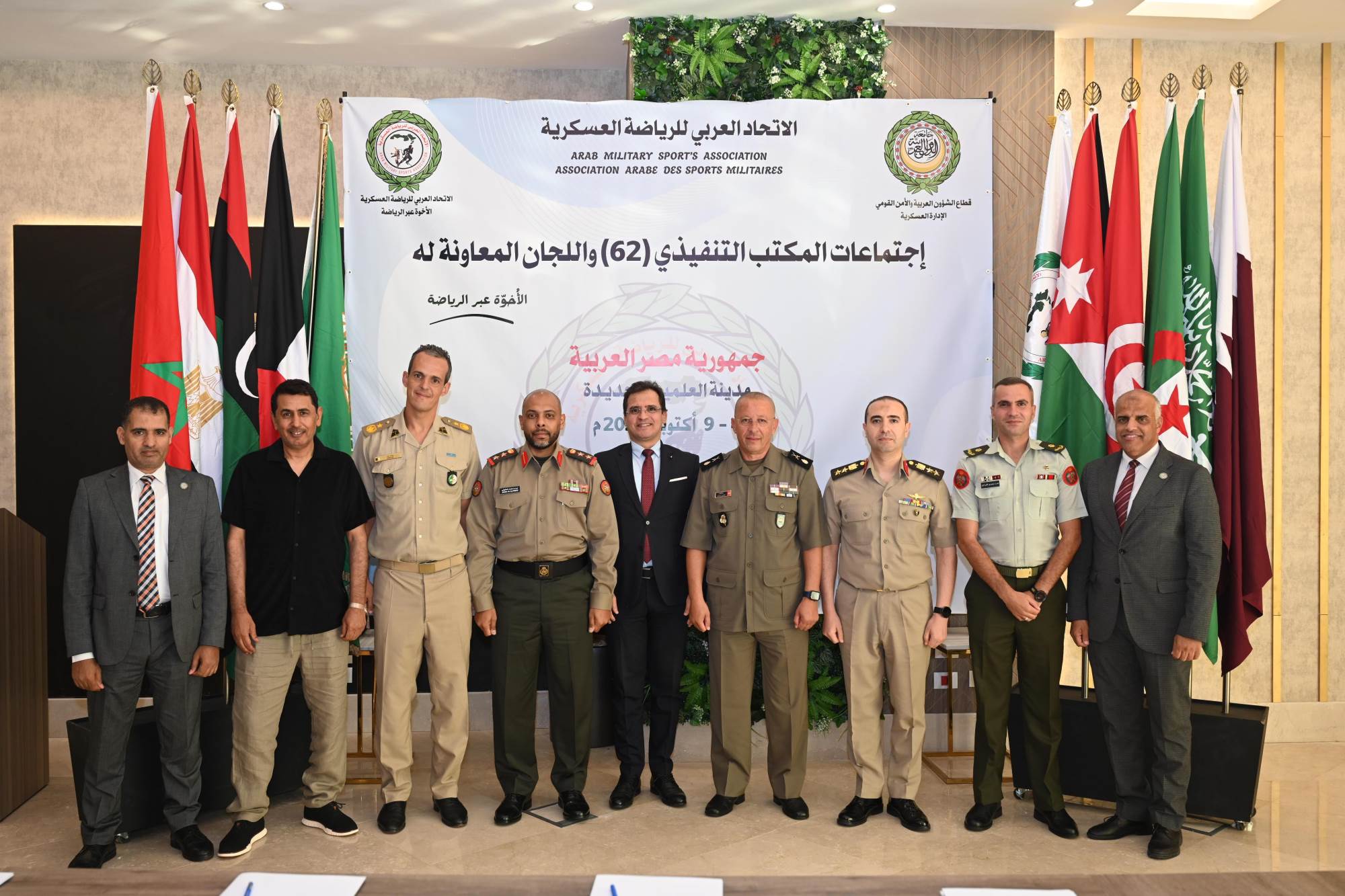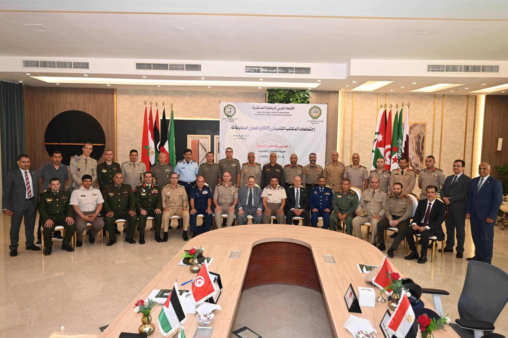 اختتمت إجتماعات المكتب التنفيذي رقم 62 للإتحاد العربي للرياضة العسكرية واللجان المعاونة له ، الذي عقد مؤخراً بفندق جيوان ريزورت بمدينة العلمين الجديدة خلال شهر أكتوبر 2025 ، بحضور السفير خليل إبراهيم الذوادي - الأمين العام المساعد رئيس قطاع الشؤون العربية والأمن القومي بجامعة الدول العربية ، ورئاسة اللواء الركن دكتور يوسف دسمال الكواري - رئيس الاتحاد ، وحضور اللواء أ.ح دكتور محمد عزازى العسال - نائب رئيس الإتحاد ، والوزير المفوض طارق عبدالسلام - الأمين العام للإتحاد مدير الإدارة العسكرية بجامعة الدول العربية ، والمستشار محمد لامين الداه رئيس قسم الرياضة العسكرية بجامعة الدول العربية ، وأعضاء المكتب التنفيذي للإتحاد من دول : الأردن ، تونس ، الجزائر ، ليبيا ، المغرب ، السعودية ، الكويت ، إلى جانب قطر ومصر ، والأمانة العامة للاتحاد علي بدر أحمد ـ سكرتير الإتحاد ، وعلي جاد محمد ـ المراقب المالي للإتحاد .