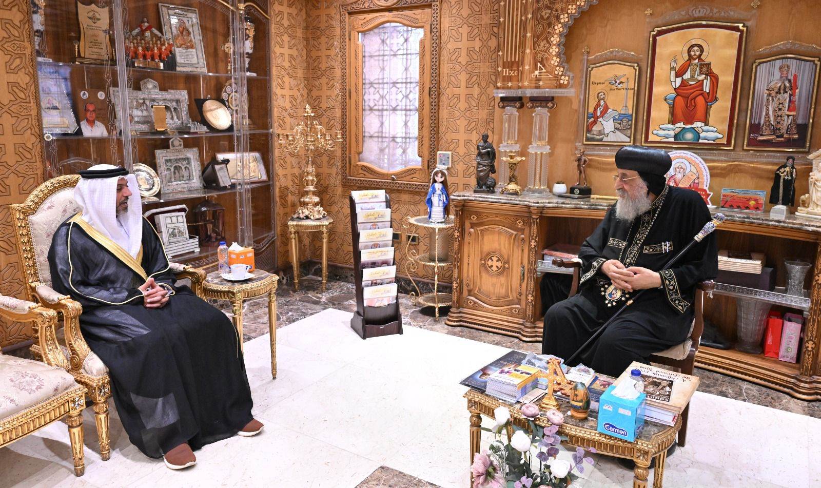 التقى حمد عبيد الزعابي، سفير دولة الإمارات لدى جمهورية مصر العربية المندوب الدائم للدولة لدى جامعة الدول العربية، مع قداسة البابا تواضروس الثاني، بابا الإسكندرية وبطريرك الكرازة المرقسية، في المقر البابوي بالقاهرة، حيث جرى بحث العلاقات الوطيدة بين الإمارات العربية المتحدة وجمهورية مصر العربية وسبل تعزيز التعاون ودعم الجهود المشتركة لنشر قيم التسامح والأخوّة الإنسانية، وترسيخ الحوار كجسر للتفاهم والسلام بين الشعوب.