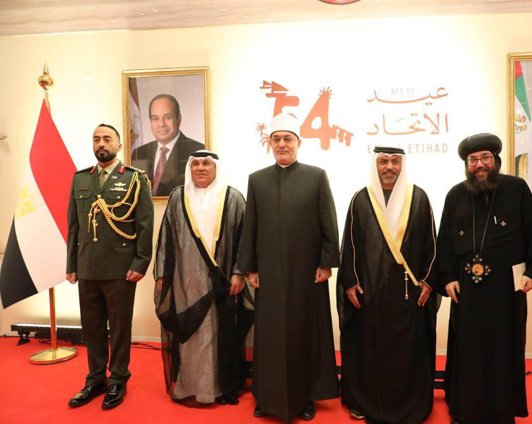 أقامت سفارة دولة الإمارات العربية بجمهورية مصر العربية، حفل استقبال بمناسبة عيد الاتحاد الـ54، مساء اليوم الثلاثاء بالعاصمة الإدارية الجديدة، وذلك بحضور ، والدكتور خالد عبدالغفار نائب رئيس الوزارء ووزير الصحة والسكان، و السفير حمد عبيد الزعابي سفير الدولة لدى القاهرة والمندوب الدائم لدى جامعة الدول العربية ، والدكتور أشرف صبحي وزير الشباب والرياضة والمهندس شريف الشربيني وزير الإسكان والمرافق والمجتمعات العمرانية الجديدة، والدكتورة رانيا المشاط وزيرة التخطيط والتنمية الاقتصادية والتعاون الدولي، وعدد من السفراء والإعلاميين وكبار الشخصيات.