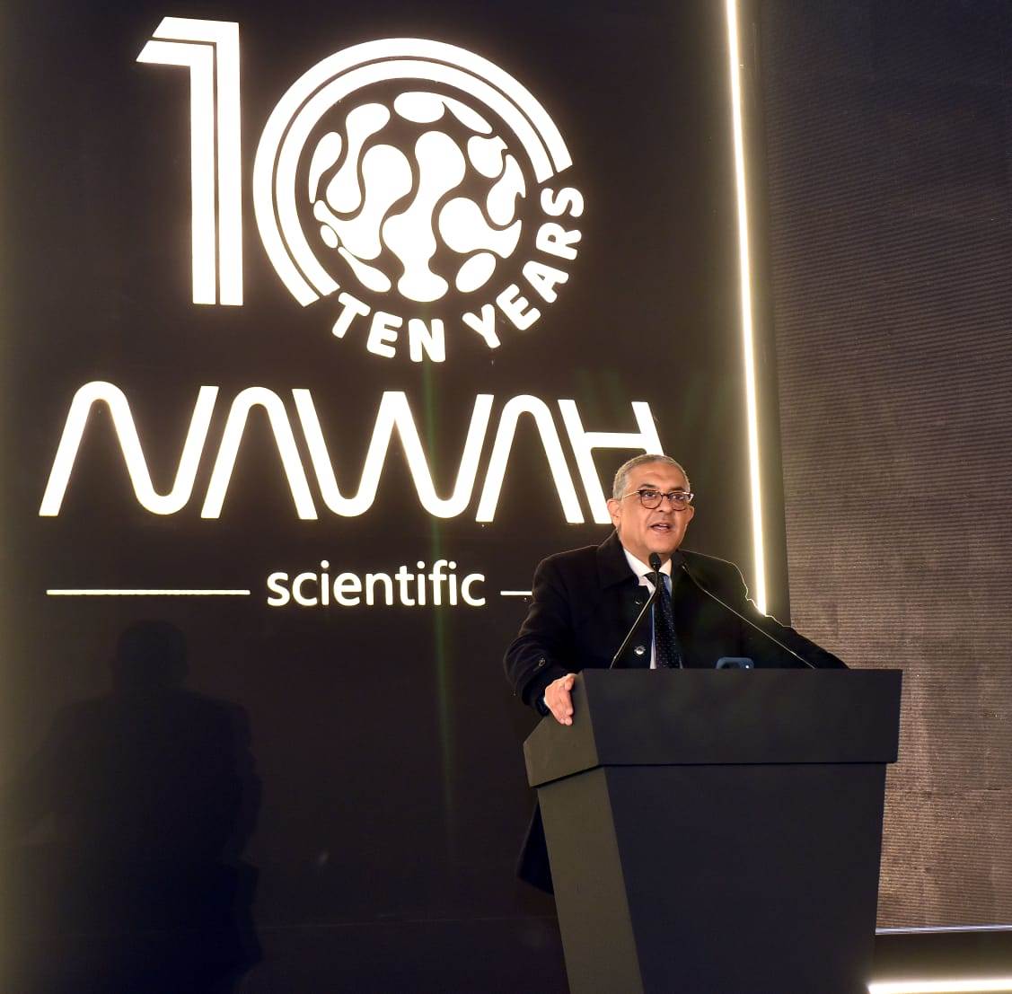 أعرب السيد/ حسام هيبه الرئيس التنفيذى للهيئة العامة للاستثمار والمناطق الحرة عن سعادته وفخره بمشاركة هذه المناسبة المهمة، مشيداً بما حققته الشركة من نجاحات محلية ودولية. وأكد أن "نَوَاه العلمية" لم تكتف على مدار عشر سنوات بالعمل داخل أسوار المختبر، بل عملت على بناء قاطرة حقيقية تدفع عجلة البحث العلمي وتخدم الصناعة في مصر والمنطقة، مشيراً إلى أن مسيرتها تمثل برهاناً حياً على أن البحث العلمي، حين تُهيأ له البيئة الخصبة ويُستثمر فيه بذكاء، يصبح أقوى محرك للاقتصاد وأصدق خادم للمجتمع.