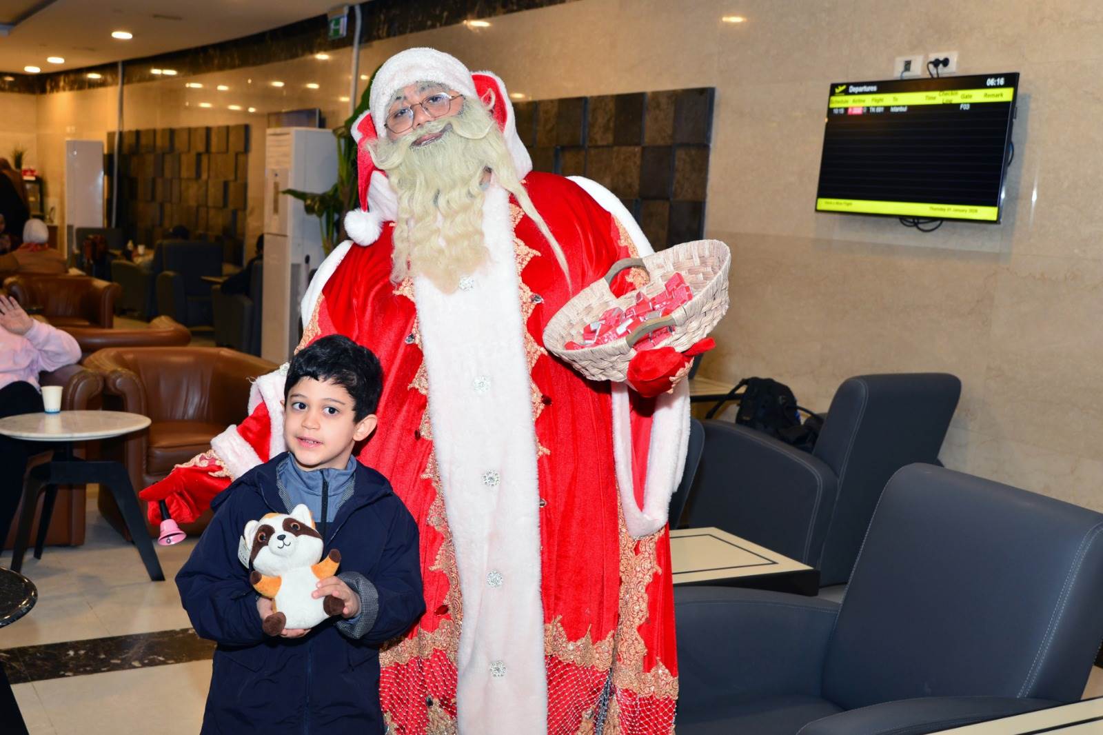 كما قامت مصر للطيران بإضفاء جو من البهجة والود من خلال مشاركة المسافرين الألعاب التفاعلية والتي لاقت ترحيب وسعادة من جميع المسافرين الذين احتفلوا بأعياد الكريسماس والعام الجديد مع مصر للطيران، فضلا عن تقديم وجبات علي متن الطائرات وفي الاستراحات تم إعدادها خصيصاً وتزويدها بأشكال خاصة بهذه المناسبة.