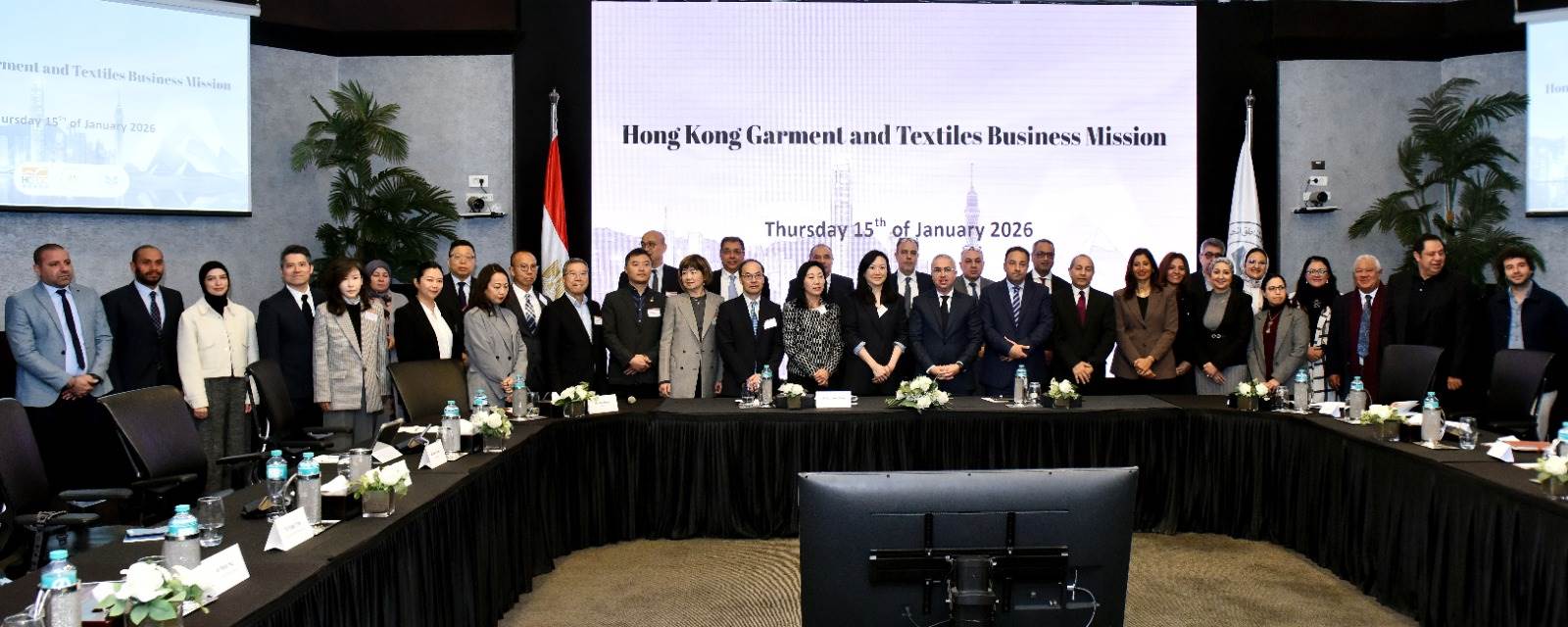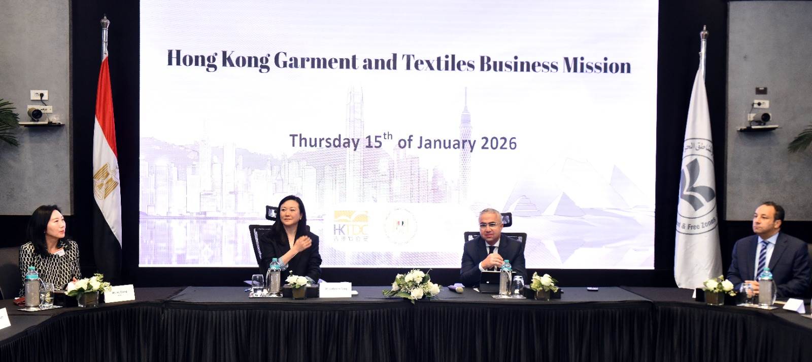 عقد المهندس محمد الجوسقي، الرئيس التنفيذي للهيئة العامة للاستثمار والمناطق الحرة، اجتماع مائدة مستديرة مع وفد رفيع المستوى من الشركات العاملة في مجال الملابس الجاهزة والمنسوجات من هونج كونج. وخلال الاجتماع تم بحث فرص الشراكة الاستثمارية بين قطاعي الغزل والنسيج في مصر وهونج كونج، بحضور السيدة/ كاثرين فانج سوك كوان، رئيسة لجنة الملابس الجاهزة بمجلس تنمية تجارة هونج كونج، وممثلي المجالس التصديرية للملابس الجاهزة والمنسوجات في مصر وعدد من الشركات المصرية العاملة في تلك المجالات وممثلي كبرى مؤسسات صناعة الغزل والنسيج في البلدين.