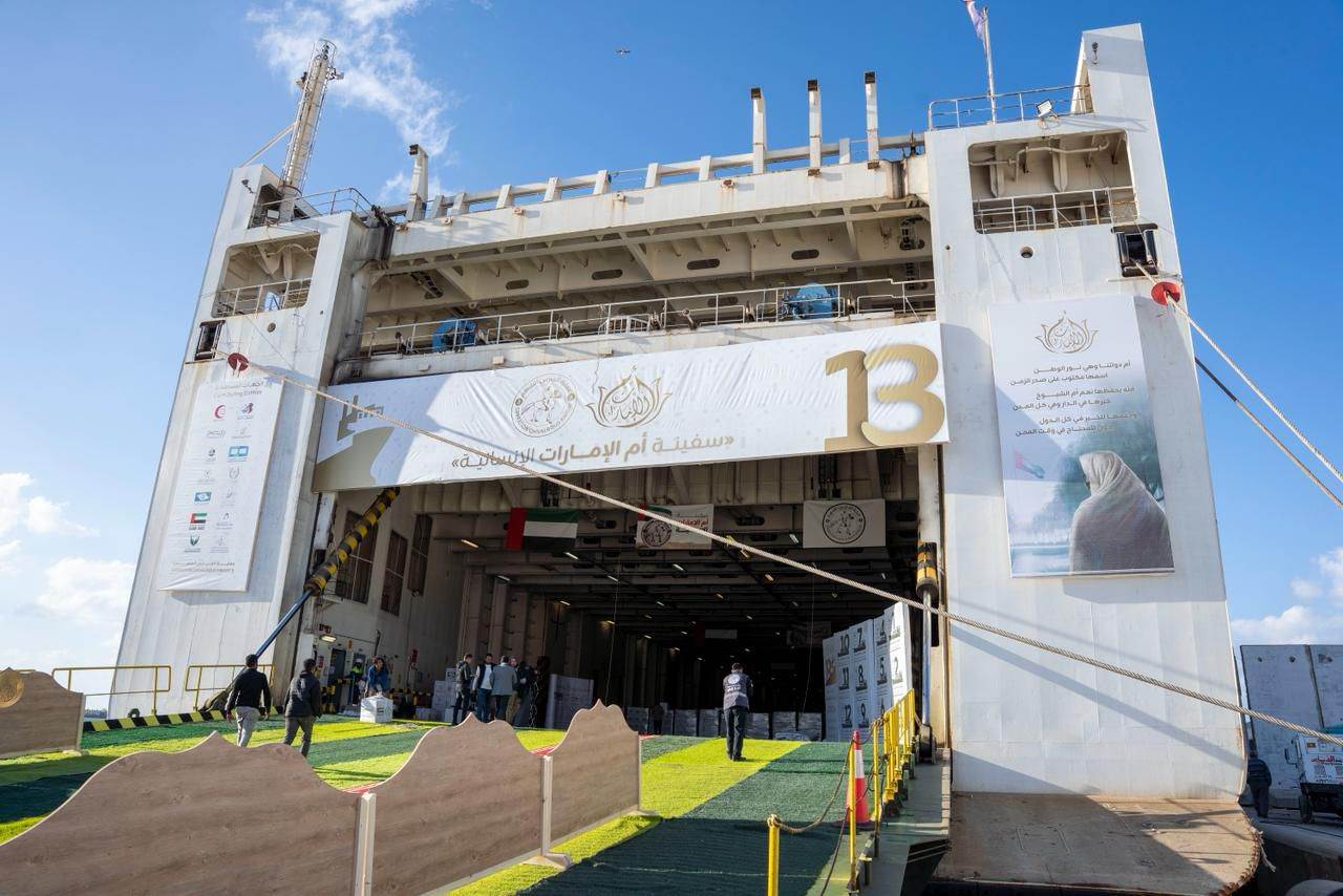استقبل ميناء العريش البحري سفينة المساعدات الإنسانية "أم الإمارات" في إطار الجهود الإنسانية والإغاثية المتواصلة التي تبذلها دولة الإمارات العربية المتحدة لدعم الأشقاء الفلسطينيين في قطاع غزة، وذلك بالتنسيق الكامل مع جمهورية مصر العربية، وتزامنًا مع حلول شهر رمضان المبارك.