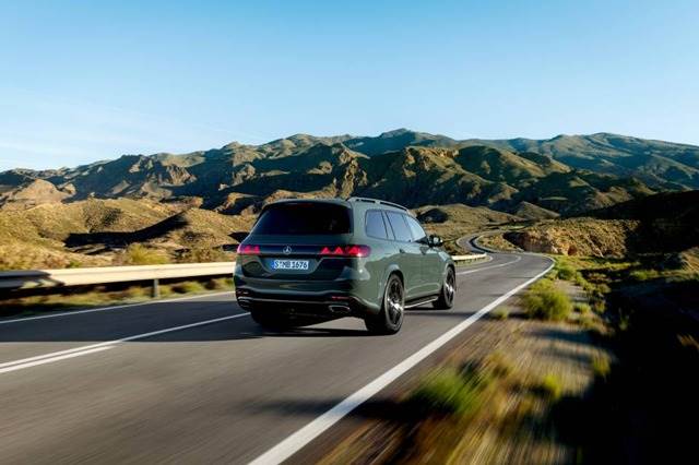 وفي الصين تضيء عند التوقف، وفي الولايات المتحدة حتى أثناء القيادة، مما يعزز من حصرية السيارة. كما يعزز هذا الانطباع الشبك الأمامي الأكبر مع إطار كرومي بارز وإضاءة محيطية وتصميم مرسيدس المميز. وهكذا، فإن GLS الجديدة ليست مجرد سيارة SUV، بل هي بيان للفخامة العصرية والتكنولوجيا المتقدمة والحضور القوي.