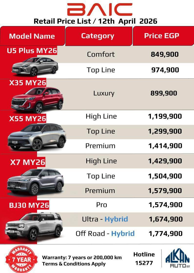 بايك U5 plus: زيادة ٧٠،٠٠٠ جنيه مصري على فئة comfort و ٧٥،٠٠٠ على فئة topline.